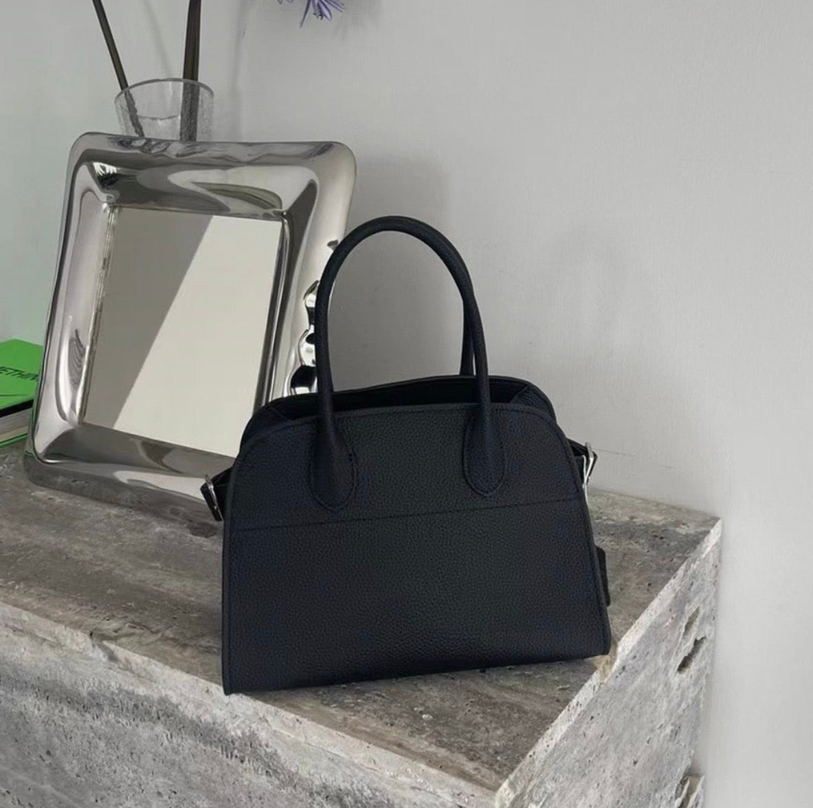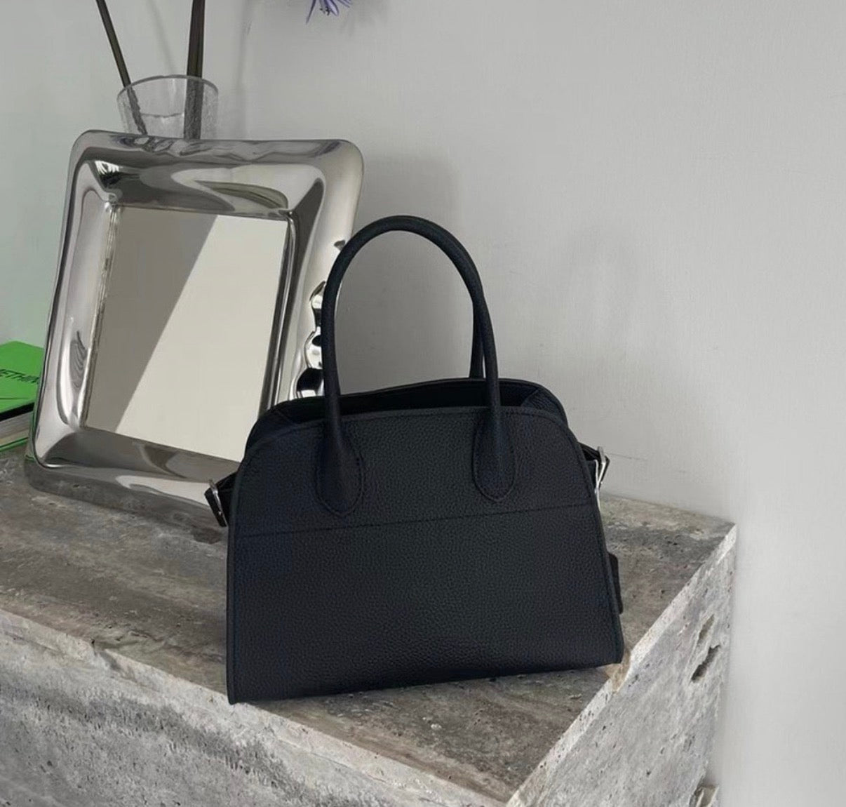 A structured Togo leather handbag with a clean, minimalist silhouette.